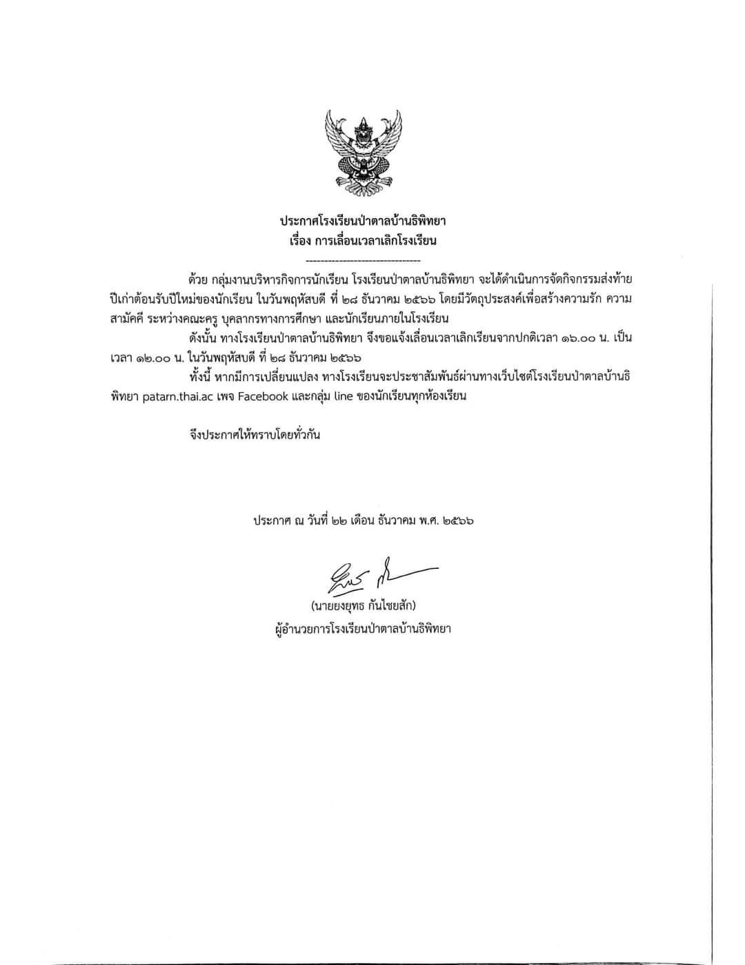 การเลื่อนเวลาเลิกโรงเรียน (กิจกรรมวันปีใหม่)