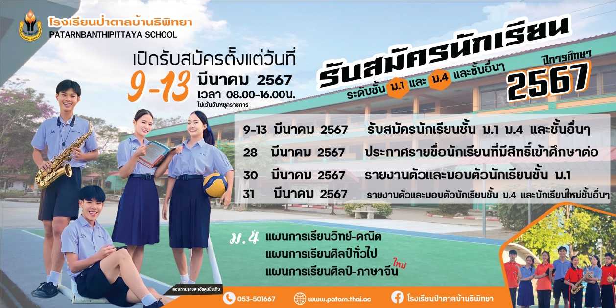 ประกาศรับสมัครนักเรียน ชั้น ม.1 - ม.4 ปีการศึกษา 2567