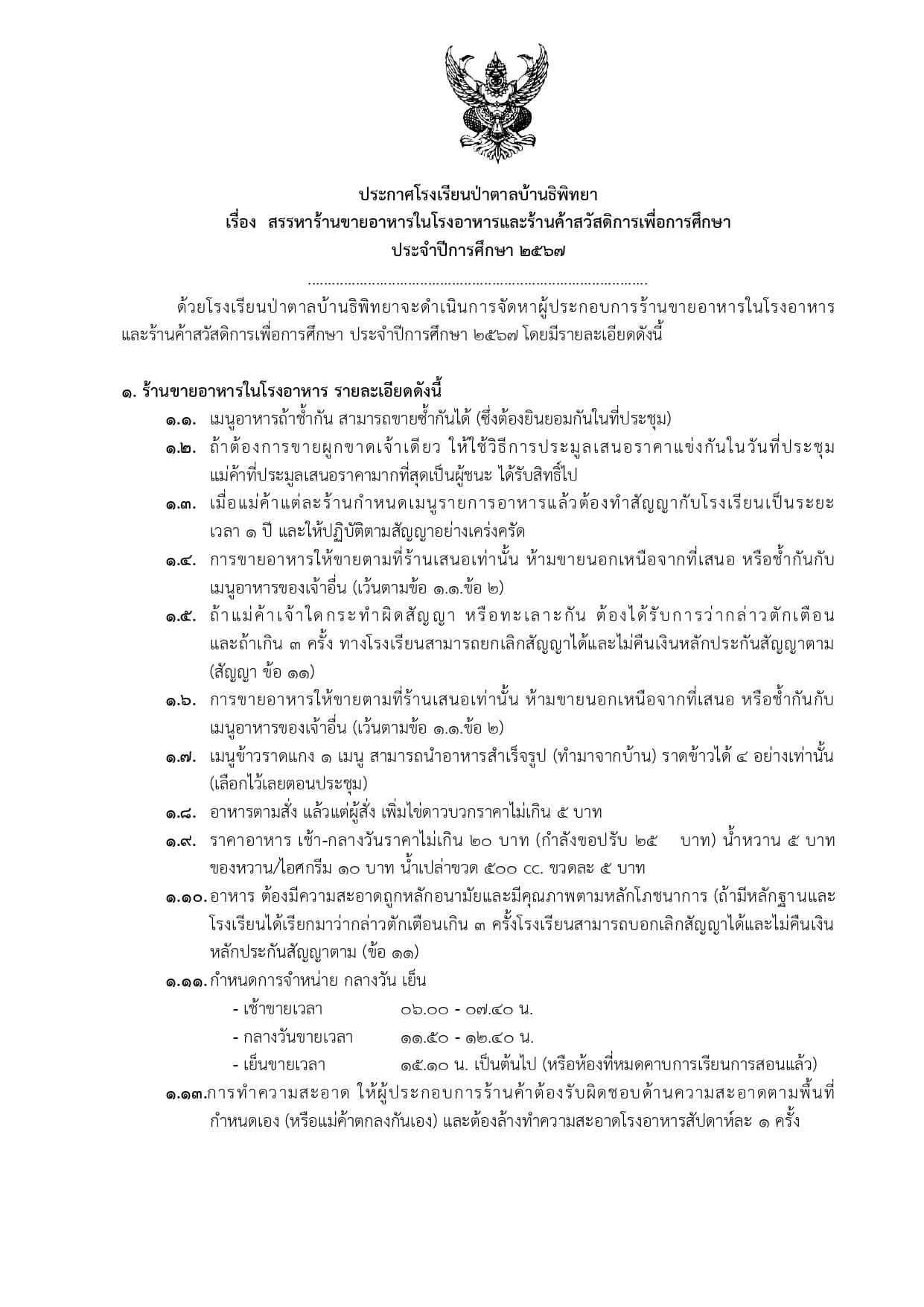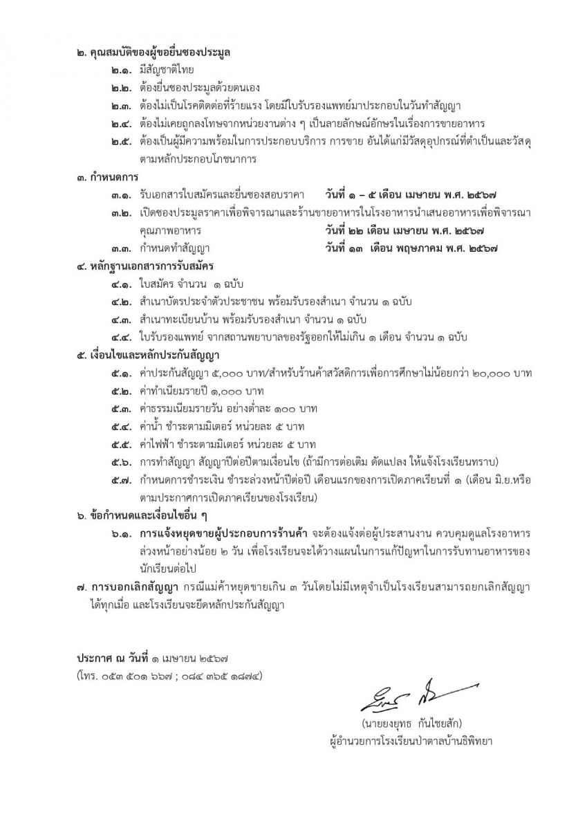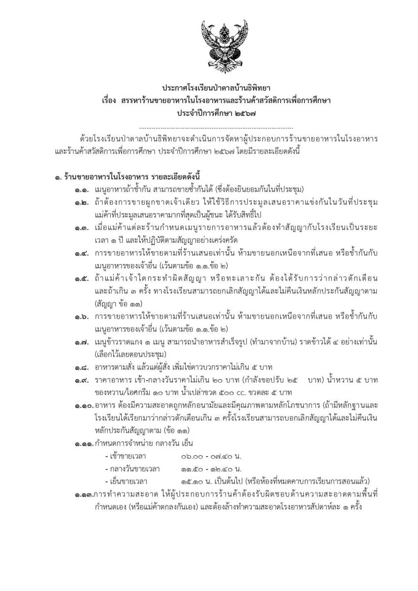 สรรหาร้านขายอาหารในโรงอาหารและร้านค้าสวัสดิการเพื่อการศึกษา ประจำปีการศึกษา 2567