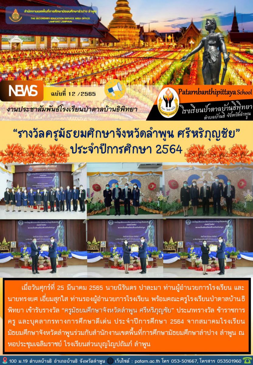 รางวัลครูมัธยมศึกษาจังหวัดลำพูนดี ศรีหริภุญชัย