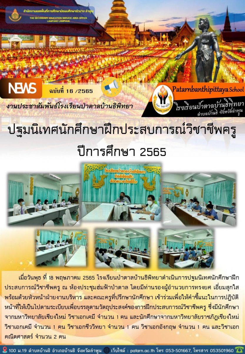 ปฐมนิเทศนักศึกษาฝึกประสบการณ์วิชาชีพครู ปีการศึกษา 2565