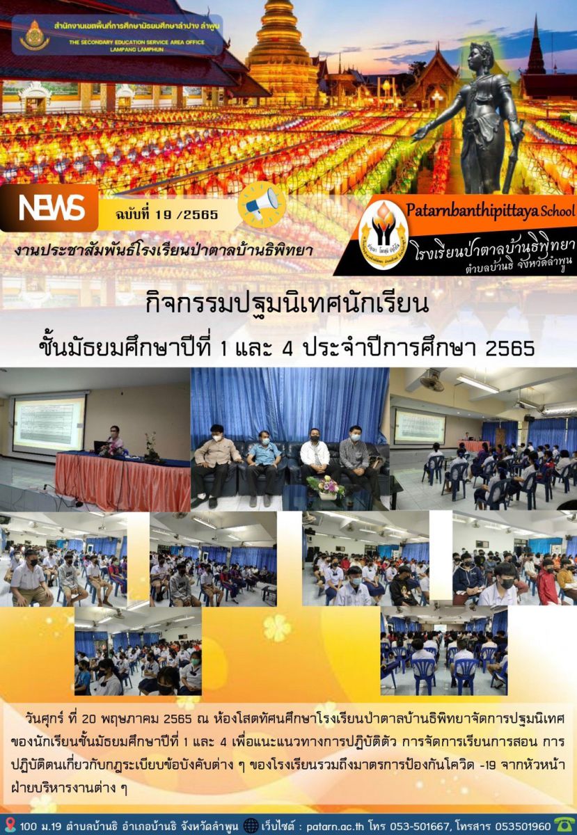 กิจกรรมปฐมนิเทศนักเรียนชั้นมัธยมศึกษาปีที่ 1 และ 4 ประจำปีการศึกษา 2565