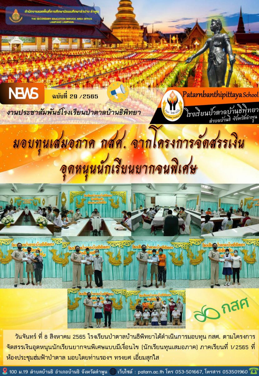 มอบทุนเสมอภาค กสศ. จสกโครงการจัดสรรเงินอุดหนุนนักเรียนยากจนพิเศษ