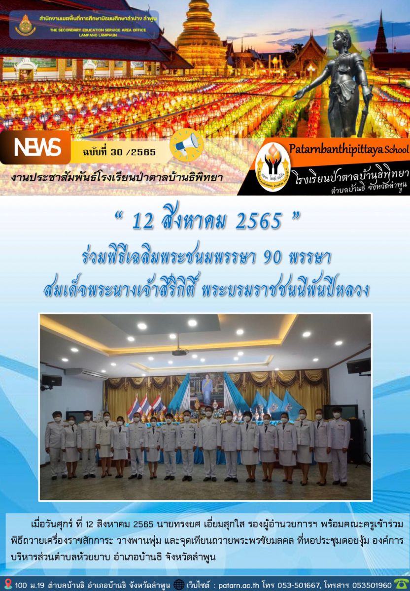 12 สิงหาคม 2565 ร่วมพิธีเฉลิมพระชนมพรรษา 90 พรรษา สมเด็จพระนางเจ้าสิริกิติ์ พระบรมมหาราชชนนีพันปีหลวง