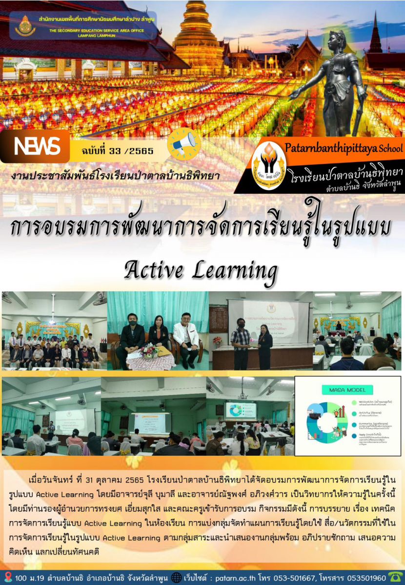 โรงเรียนป่าตาลบ้านธิพิทยาได้จัดอบรมการพัฒนาการจัดการเรียนรู้ในรูป Active Learning